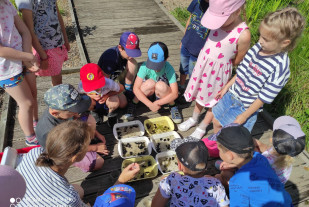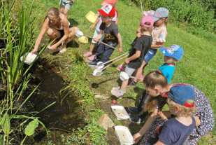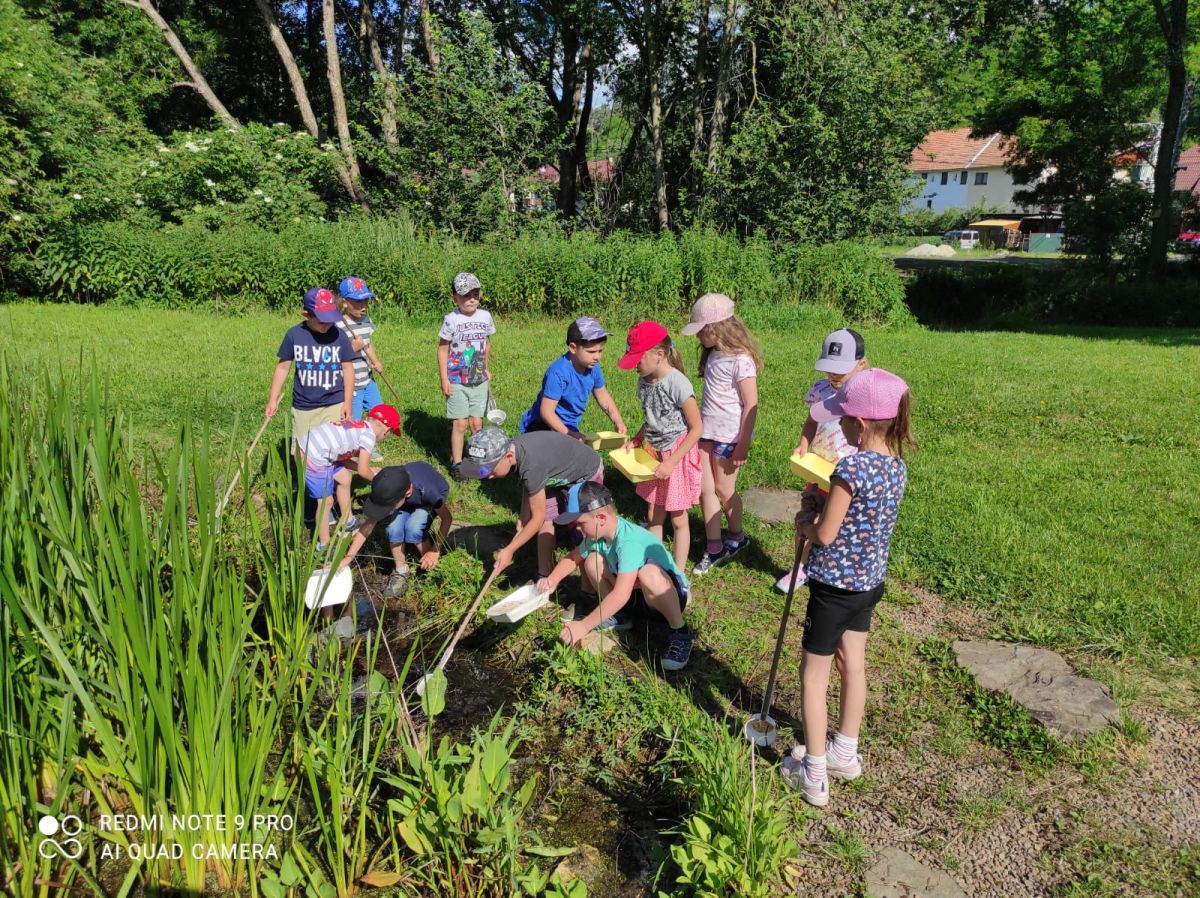 V pondělí 24.6.2024 jsme vyjeli do Balin u Velkého Meziříčí na vzdělávací program Voda, vodička v rámci projektového dne. Děti si připomenuly, že je voda nezbytná součást našeho života. Pracovaly ve skupinkách a plnily úkoly na různých stanovištích. Lovily vodní živočichy a prozkoumávaly život v jezírku a v potůčku. Poznávaly sladkovodní ryby, stavěly řeku a hrály pohybové hry.