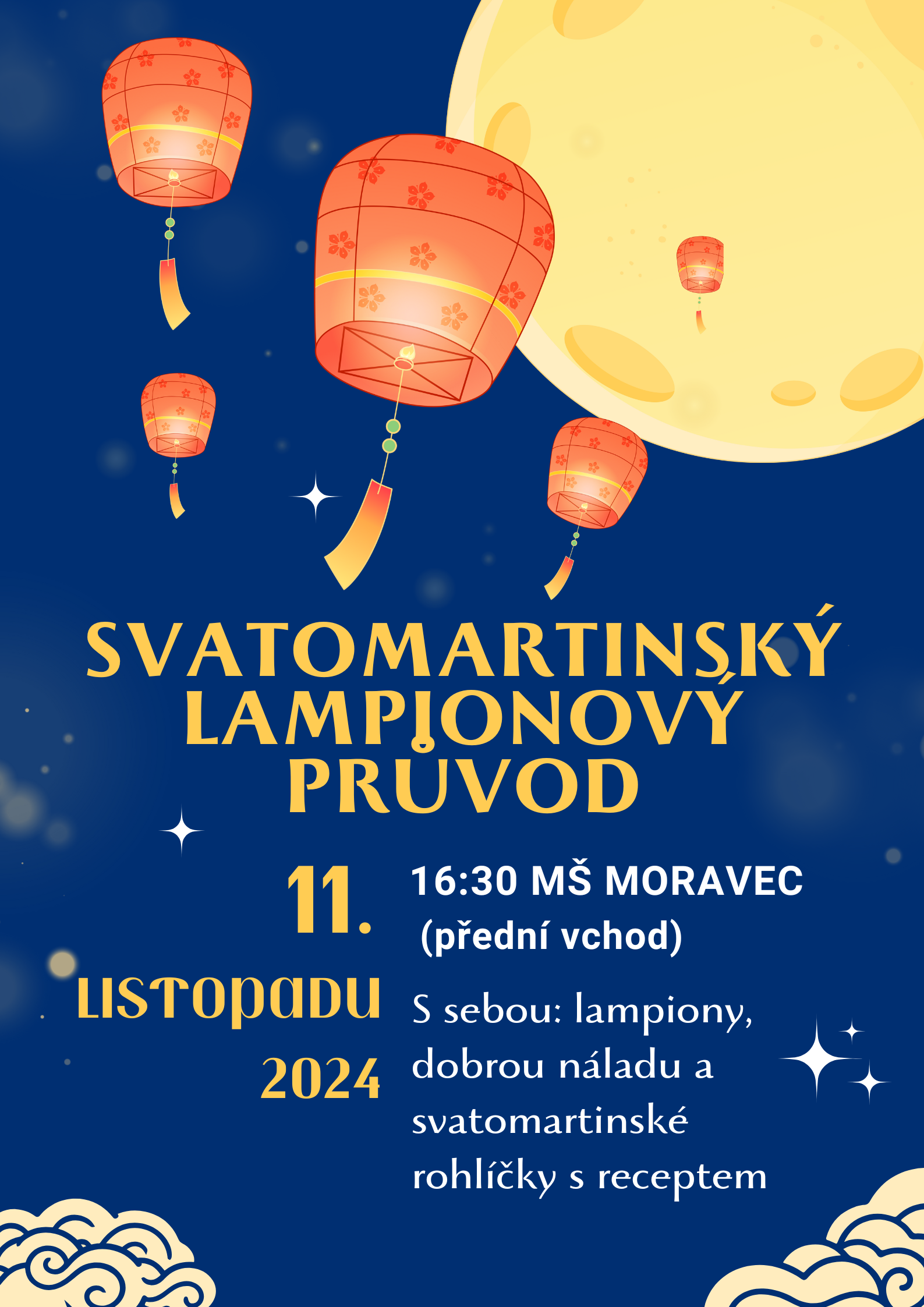 Zveme všechny na lampionový průvod pořádaný 11. 11. 2024 od 16:30 u MŠ (vchod od silnice).