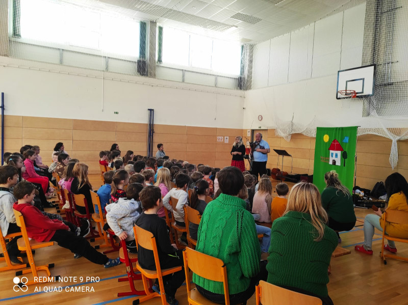 Dne 12.12. 2025 přijeli do naší školy paní Miroslava Smékalová a pan Leoš Drahotský s hudebně výchovným programem ,,Domácí zvířata". Děti se během programu zábavnou formou seznámily se známými i netradičními hudebními nástroji a životem venkovských zvířat. Děti byly vtahovány do děje a měly možnost si zazpívat známé lidové písně a pohybově se vyjádřit.