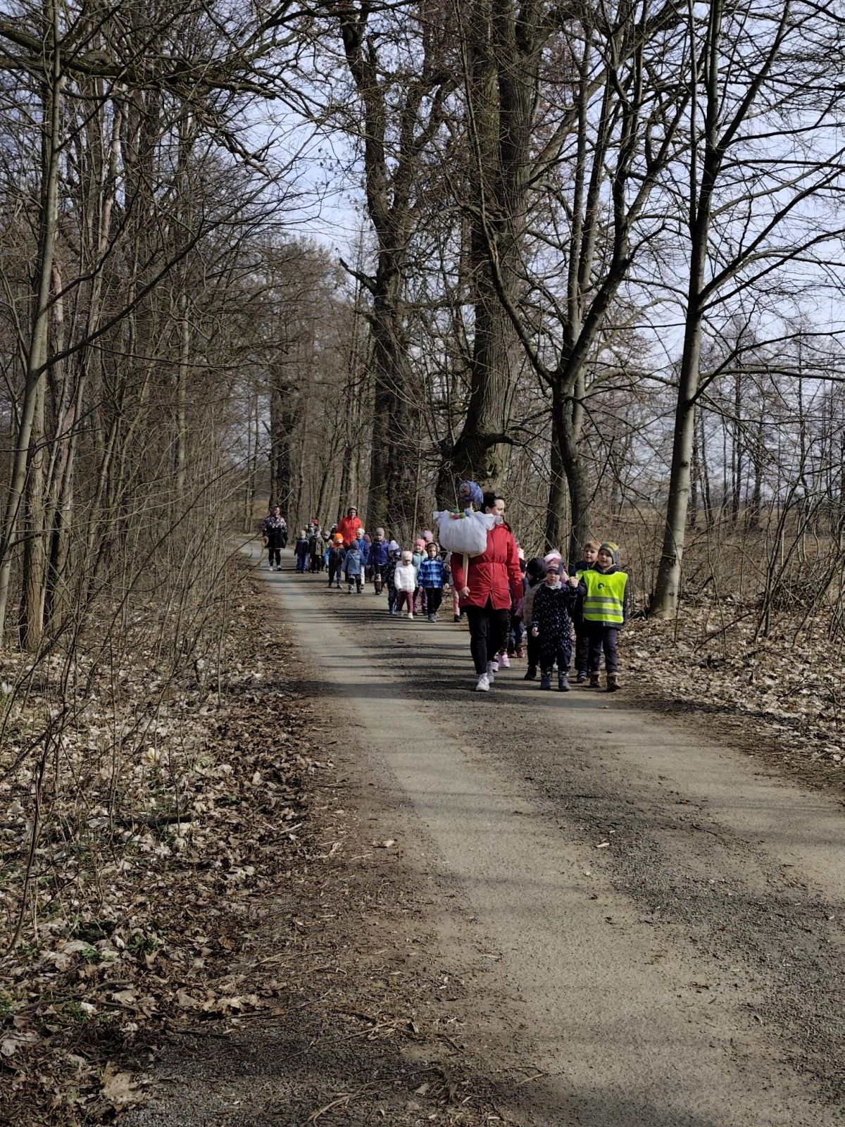V naší mateřské škole se snažíme dětem přibližovat české tradice a zvyky. Jednou z nejoblíbenějších jarních událostí je u nás bezpochyby vynášení Moreny, symbolu zimy. Na tento den, 25.3.2026, jsme se pečlivě připravovali. Děti za pomoci paní učitelek vyrobily Morenu, kterou nastrojily do starých šatů a ozdobily náhrdelníkem z vyfouknutých vaječných skořápek. Za doprovodu písniček a říkadel jsme se pak v průvodu vydali k vodě. U vody jsme se s Morenou i zimou definitivně rozloučili. S hlasitým pokřikem ,,Zimo, zimo, táhni pryč!" jsme Morenu poslali po vodě a symbolicky tak uvolnili cestu jaru a sluníčku. Byla radost sledovat jak děti tradici prožívají . Věříme, že i díky těmto společným zážitkům si budují hezký vztah k naší kultuře a přírodě.