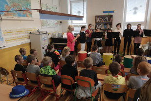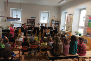 24.10. k nám do školy zavítala děvčata ze ZUŠ z Nového Města na Moravě. Pod vedením paní učitelky Kabrdové nám dívky zahrály na flétny. Hra byla provázena mluveným slovem, kdy jsme si vyslechli příběh o Oskarovi, který si založil hudební skupinu. Vystoupení se nám velmi líbilo a s údivem jsme pozorovali, na jaké flétny se může člověk naučit hrát.