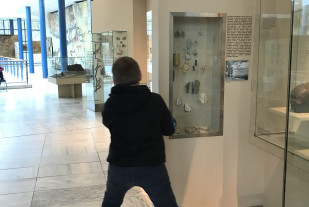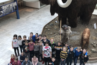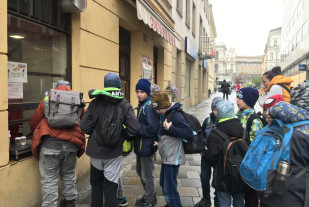 Potom jsme se vrátili k Janáčkovu divadlu, kde nás naložil pan řidič a převezl k pavilonu Anthropos. Paní lektorka se nás ujala a provedla celou výstavou. Žáci vzorně poslouchali a dobře se ptali na podrobnosti. Mají velikou pochvalu. Anthropos má bezva kavárnu, která nám sloužila ke druhému občerstvení a také utracení části peněz.