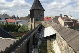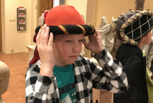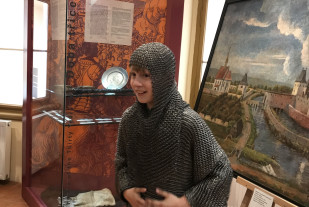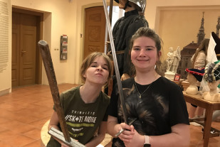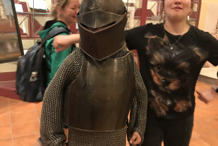Po obědě jsme šli do Muzea, kde pro nás paní lektorka měla krátké povídání o středověku, pak jsme si vyzkoušeli středověké oblečení a vyrazili jsme na prohlídku zrenovovaných hradeb. Všech 19 bašt je zachovaných a tři jsme si mohli prolézt.
