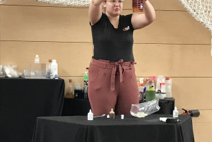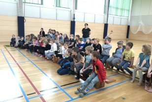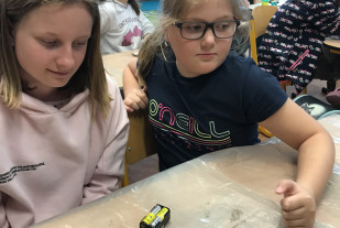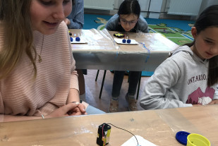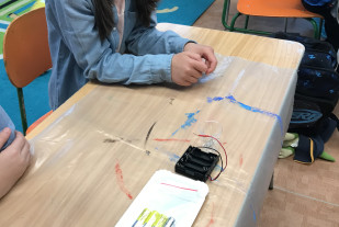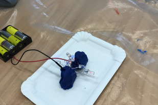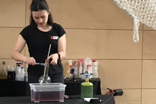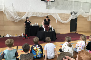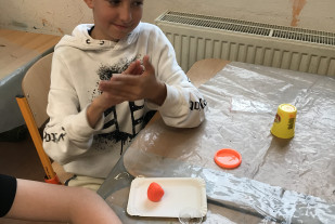 Po programu v tělocvičně jsme se rozešli do tříd a čekaly nás dílničky. V mateřské škole pracovali s barvami, míchali je a zkoušeli přidávat zásady a kyseliny. Menší žáci vytvářeli létající raketky a nejstarší žáci pracovali s vodivým těstem. Vyzkoušeli si zapojení obvodu a přidávali diody.