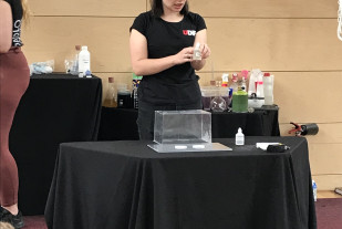 V pátek 3. 5. přijelo do naší školy Úžasné divadlo fyziky - ÚDIF. Tentokrát přijely dvě lektorky a předvedly nám program Barevná chemie. Dozvěděli jsme se, jak ovlivňuje barevnost roztoků zásaditost a kyselost. Jak se dá zabarvit oheň. Také jsme si dokázali, že se látky rozpouštějí lépe v teplé vodě, jak jsou značeny nebezpečné chemikálie v domácnosti a spoustu dalších informací.