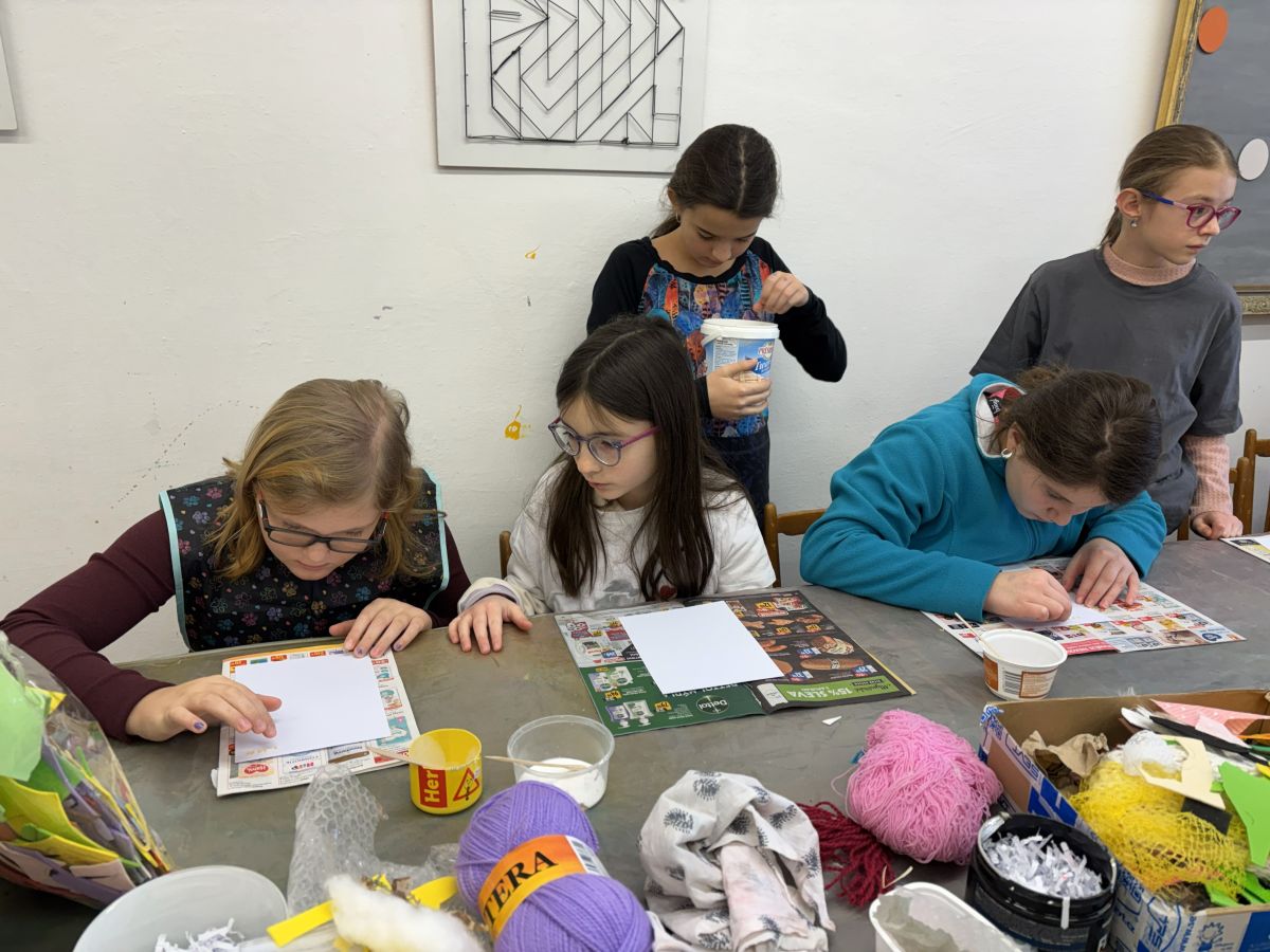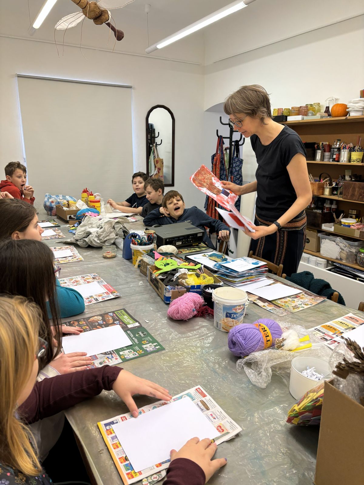 V galerii jsme si vyzkoušeli grafickou techniku – pomocí lisu jsme tiskli obrázky a vytvořili krásné originální obrazy. Dále jsme tiskli vlastní razítka vyrobená z plastelíny a nechyběla ani práce s prostorem: tvořili jsme malé busty. Dvě hodiny plné tvoření utekly opravdu velmi rychle.