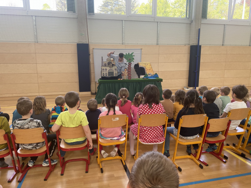 V úterý 10. 5. k nám do školy a školky přijel pan Hrubec a pomocí loutek zahrál pohádku Aladinova lampa. Dozvěděli jsme se i něco málo z loutkového světa.